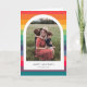 Una tarjeta de foto multi color minimalista y simple, con un diseño de arco moderno. Fácilmente personalizable con la foto de tu familia y mensaje de felicitación personalizado.