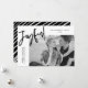 Envíe alegría a amigos y familiares con una tarjeta de vacaciones Simplemente alegre de Late Bloom Paperie! La moderna tarjeta navideña presenta "Joyful" en un guión de pincel con letras negras. Personalice la parte delantera de la tarjeta agregando su foto, saludo personalizado, nombre de familia y el año. La tarjeta se invierte para mostrar un patrón de rayas diagonales en blanco y negro.