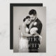La tarjeta de Navidad moderna para recién casados presenta una foto favorita en la portada con casada y alegre en tipografía blanca moderna.