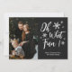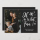 Tarjeta de vacaciones con foto de copos de nieve con caligrafía negra ¡Oh, qué divertido. Envía saludos navideños personalizados y personalizables a amigos, colegas y familiares en un diseño de foto simple, elegante, chic y moderno, tarjetas festivas de estilo minimalista natural. Debajo de la caligrafía aparece tu mensaje de saludo personalizado con tipografía moderna.
