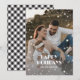 Tarjetas de vacaciones de fotos personalizadas de cuadros de búfalo en blanco y negro con nieve que cae y estrellas sobre una foto en la parte frontal y un hermoso fondo de cuadros de búfalo en blanco y negro en la parte trasera. Personalice fácilmente estas tarjetas de vacaciones de fotos estrelladas con su foto, texto y un nombre de familia. Cree tarjetas mágicas de Felices Fiestas para su familia y amigos.