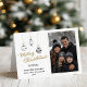 Tarjeta Festiva Foto de familia moderna en negro y dorado