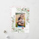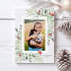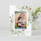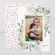 Envía tus buenos deseos navideños con estilo con esta hermosa tarjeta que incluye tu foto rodeada de vegetación en acuarela y bayas rojas. Agrega tu saludo personalizado y nombres/año para personalizar. Elegante y chic, pero simple y atemporal, el diseño perfecto para felicitaciones alegres.