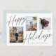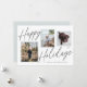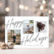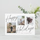 Esta tarjeta de fiestas casual pero elegante presenta tres fotos y dice "Felices Fiestas" en una tipografía script negra.