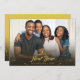 ¡Comienza el año nuevo con una tarjeta de foto personalizada para familiares y amigos! Este diseño moderno y elegante presenta una hermosa caligrafía de "Feliz Año Nuevo" y estrellas doradas falsas. Solo agrega tu foto y detalles favoritos para hacerlo tuyo.