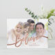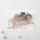 Personalizado Elegant Believe Holiday Card Card - Elke Clarke© Envíe a sus Navidades saludos de vacaciones a sus amigos y familia usando este moderno diseño de tarjeta fotográfica de vacaciones con la palabra "Believe" en una bonita letra con letras falsas rosas de guion de Relieve metalizado dorado, un diseño superpuesto en formato de tarjeta horizontal. Añade tu refrán y segunda foto en la parte posterior de la tarjeta. Reemplace las fotos de ejemplo con las suyas. Efecto fotográfico impreso del Relieve metalizado de oro rosa. Hay otros colores y estilos disponibles en nuestra tienda de www.zazzle.com/monogramgallery.