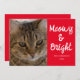 Cuta tarjeta de foto de Navidad. Reemplace la foto con su propio gato y cambie el nombre y el año. Fácil de hacer desde la página del producto. Tipografía blanca de Meowy y brillante sobre fondo rojo. Una tarjeta de diversión para los amigos y la familia esta temporada de vacaciones.