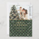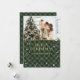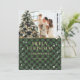 Tarjeta de Navidades de fotografía de mantas de búfalo verde personalizado y oro con nieve y estrellas en un patrón de manto de búfalo. Personaliza fácilmente esta tarjeta de vacaciones de color verde y dorado con tu foto y texto. Hay más opciones de color disponibles.