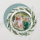 Moderno follaje mínimo es escritura de paz escritura tarjeta de Navidades de vacaciones. El eucalipto pintado a mano, el follaje mínimo y la moderna corona rústica de mimbre le dan a esta tarjeta un ambiente lujoso. En verdes, marrones y grises elegantes.