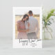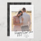 Tarjeta de felicitación de vacaciones con foto de guión simple de año nuevo feliz moderno que presenta letras dibujadas a mano modernas con foto en la parte frontal. Haga clic en el botón personalizar/editar para personalizar este diseño con sus fotos y detalles.