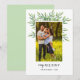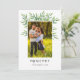 Ramas elegantes de acuarela con hojas verdes detrás de una foto familiar en esta sencilla tarjeta de vacaciones.