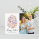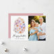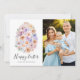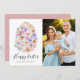 Sencilla y linda tarjeta de fotos de Pascua con flores polvorientas de color rosa, melocotón, azul claro y violeta en forma de huevo de Pascua. "Happy Easter" se muestra en un guión moderno de caligrafía con tus nombres mostrados a continuación. La floral tarjeta de Pascua se revierte a un sólido fondo rosa polvoriento con espacio para texto e imágenes adicionales.