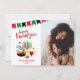 Esta fabulosa foto de Kwanzaa con "¡Feliz Kwanzaa!" en un alfabeto moderno en rojo, una agrupación de Kinara, tus nombres y el año con un tipográfico tradicional y nítido y una encantadora foto de ti, tus hijos o tu familia en la parte delantera y un patrón africano coordinado en negro, rojo, amarillo y verde en la parte trasera es perfecto para mandarlo a toda tu familia y amigos. A todos les encantará conseguir una nueva foto. Para hacer de esta tarjeta su propia, simplemente seleccione Personalizar esta plantilla, subir una foto favorita, y escriba sus nombres, y el año. ¡Es tan fácil!