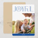 por kat massard >>> WWW.SIMPLYSWEETPAPERIE.COM <<< Un diseño elegante de tarjeta que presenta la cita "JOYFUL" con un tipo de guión elegante combinado con tipografía de serif y color liso en el reverso, lo que le da la oportunidad de escribir a mano un mensaje personal. ¡Con una foto en forma de cuadrado de moda en la parte delantera de tu foto favorita!