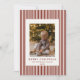 Esta tarjeta fotográfica familiar, minimalista y moderna, cuenta con elementos sencillos de pinstripe, tipografía serif y un color de arándano rojo. Envíe su amor de vacaciones al estilo clásico tradicional con esta adorable tarjeta de vacaciones de collage de fotos.