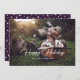 Fotografía personalizado púrpura tarjetas de vacaciones con un overlay de nieve y un hermoso título de guión festivo en el frente y estrellas en un fondo púrpura en la parte posterior. El fondo se puede cambiar a cualquier color. Personaliza fácilmente estas tarjetas de vacaciones de fotos moradas con tu imagen y un nombre de familia.