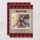 Tarjeta de Navidad con Foto de Monograma con Arpillera Rústica y Cuadro de Búfalo - Esta tarjeta de Navidad única presenta la foto de su familia, el monograma de su familia con ramas de pino a ambos lados y está acentuada con cuadros de búfalo rojos. El saludo editable proporcionado dice "Deseándole una Feliz Navidad y Felicidad Siempre" y el nombre y año de su familia. La tarjeta es parte de una colección.