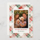 Envíe un saludo de vacaciones a su personalizado con este bonito diseño con una plantilla de fotos de aspecto retrato sobre un cálido, rústico rojo, verde y color de huevo diagonal de fondo de manta de color agua.