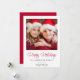 Tarjeta de saludo de Navidades modernos con tu foto y "Felices Fiestas" mostrada en un elegante guión rojo.