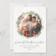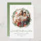 Tarjeta Festiva Foto de Navidades de la familia Gold Green Wreath