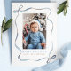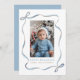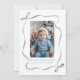 Envíe alegría de vacaciones con esta tarjeta fotográfica Blue Wavy Ribbon Bow Frame. Con un elegante arco de cinta azul acuarela y un diseño de marco ondulado, esta tarjeta destaca maravillosamente su foto favorita. Perfecto para compartir saludos festivos con sus seres queridos, esta tarjeta única y moderna le da un toque de encanto a sus deseos de temporada.