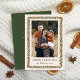 Envíe elegantes y hermosos saludos de vacaciones a su familia y amigos con esta elegante tarjeta de foto de Navidad. Tiene un marco cítrico pintado a mano que contiene naranjas, hojas y brotes de pino. La parte posterior contiene más plantillas de texto para una mayor personalización. Los colores de fondo, que se muestran en verde oliva blanco y oscuro, se pueden personalizar si se desea.