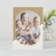 Tarjeta de vacaciones de Navidades de familia de la familia POPPY Gold Unique Xmas. Personalice la parte delantera de la tarjeta con una foto, su apellido y el año. Personalice la parte posterior con un saludo de vacaciones opcional o noticias familiares, y su apellido.