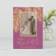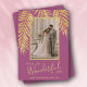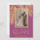 Glamorosos frentes de palma de purpurina de oro falso en un fondo de frambuesa resaltan tu foto favorita en estas tarjetas de fotos navideñas navideñas. "Es una vida maravillosa", o cualquier saludo que elijas, y tus nombres en la parte inferior con letras de moda. Seleccione Matte para el papel más pesado. ***Plantilla HORIZONTAL hecha en nuestra tienda.