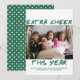 Difundir vibraciones festivas con esta tarjeta de foto de moda verde extra Cheer de Navidad de este año, perfecta para compartir sentidos saludos navideños. Con su preciada foto familiar acompañada de un audaz diseño de tipos de letra y un animado mensaje "Extra Cheer This Year", esta carta adopta un tema minimalista simple y moderno. El diseño limpio y el vibrante saludo "Feliz Navidad" lo convierten en un saludo fotográfico ideal para las vacaciones. Diseñada con impresión de alta calidad, esta tarjeta asegura colores vivos y detalles nítidos. Personalice con su foto familiar y su mensaje de vacaciones personalizados para crear un conservador elegante y memorable que traiga más alegría a sus seres queridos! Fotografía © Storytree Studios, Stanford, CA