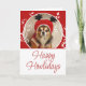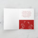 Tarjeta de Felicitación de Navidad. Hermoso follaje blanco sobre un fondo rojo. Personaliza el adorno con la foto de tu perro, el nombre de tu familia, el año y el mensaje dentro o bórralo.