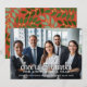 Tarjeta de vacaciones de negocios - Hojas botánicas verdes y patrón de bayas en la parte posterior. Utilice una imagen con el sujeto preferiblemente en el medio o hacia la parte superior. Una foto más oscura funciona mejor con esta superposición de texto blanco. Haga un saludo de Merry Navidad único y trendy con un patrón trendy y alegre en la parte posterior.