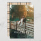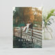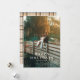 Tan tartan plaid patrón, foto tarjeta de vacaciones. Líneas de texto de plantilla para el saludo de vacaciones, nombre y año.