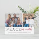 La tarjeta moderna de vacaciones presenta 2 fotos conectadas por un corazón, las palabras "paz en la tierra" en fuente moderna y de escritura.