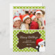Tarjetas fotográficas de personalizable con un adorable pingüino usando un Sombrero Santa en un verde claro con fondo de polka.