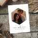 Celebra tu primer año como recién casados con una tarjeta de Navidades moderna y minimalista. Con un diseño fotográfico polígono, tema blanco y negro, y un guión elegante, esta tarjeta es perfecta para compartir su alegría casada y alegre. Ideal para tarjetas de Navidades recién casados y tarjetas de fotos de vacaciones casadas.