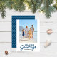 La tarjeta de vacaciones Blue Waves Sea-Sun's Greetings Photo tiene un patrón de onda azul en la parte trasera. Personalízalo reemplazando el texto del marcador de posición y reemplazando la imagen del marcador de posición con su propia foto. Para obtener más opciones, como cambiar el tipo de letra y su tamaño/color o el espaciado entre letras, haga clic en el botón "Personalizar". *Tenga en cuenta que la marca de agua Zazzle que aparece en la vista previa del zoom NO aparecerá en el producto impreso final. © Rosewood y Citrus