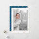 Las tarjetas de fotos elegantes y lindas son perfectas para todos tus amigos y familiares en esta temporada de fiestas. Personaliza el texto "saludos de la temporada" con tus propios saludos y cambia el nombre de la familia y el año y reemplaza la imagen por una foto de tus hijos, mascota o toda la familia. El diseño presenta un borde negro alrededor de la imagen con bokeh dorado en el fondo y un lugar para poner el nombre de tu familia y el año. La parte trasera presenta el mismo bokeh dorado con estrellas doradas sobre un fondo azul.