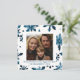 Tarjeta Festiva Foto de vacaciones cuadradas de copos de nieve azu