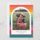 Una tarjeta de foto multi color minimalista y simple, con un diseño de arco moderno. Fácilmente personalizable con la foto de tu familia y mensaje de saludo personalizado.