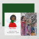 Tarjeta de felicitación de foto de vacaciones de ángel rojo y verde de Navidad con influencia afroamericana. Se recomienda una foto en formato retrato.