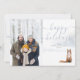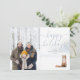 Personaliza tu foto especial, nombre de familia y fecha en esta elegante tarjeta de vacaciones con un zorro en un fondo de bosque invernal. Diseñado por Thisisnotme©