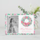 Tarjeta Festiva Foto de Wreath de la playa de Palm Beach Pink & Gr