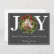 Difunde alegría de vacaciones a amigos y familia con esta célebre tarjeta de vacaciones plana de los Navidades de la Alegría. El diseño de la tarjeta fotográfica incluye una foto colocada dentro de una corona hueca, que deletrea la Alegría con un fondo de color simple. Colores adicionales disponibles con este diseño.