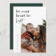 Cota de Navidad de tipografía moderna, "que tu corazón sea ligero", tarjeta de foto de marco de arco de vacaciones. Características, espacio de plantilla para su mensaje de vacaciones personal en la parte posterior.