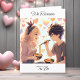 Adorable pareja de anime comiendo fideos Ramen juntos rodeados de corazones de acuarela adorables. Tarjeta personalizada del Día de San Valentín llena de juegos de palabras de Ramen como "estamos destinados a estar juntos y te amamos mucho". Dentro de la tarjeta puedes agregar tu foto favorita en el corazón en el área personalizable.