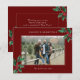 Tarjeta de vacaciones de Personalizado de Navidades de la Temporada Roja. Un diseño sencillo y elegante con bayas de Navidades y una foto con mensajes que puedes personalizar. En la parte posterior de la tarjeta hay un mensaje personalizado que puedes personalizar.