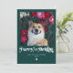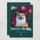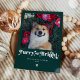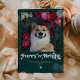 Tarjeta divertida de Navidad con foto de perro peludo y brillante