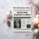 Celebre las fiestas con un estilo de periódico antiguo con esta tarjeta de Navidad personalizada. La parte frontal presenta titulares festivos en negrita y espacio para el saludo de su familia, mientras que la parte posterior destaca una colección de fotos preciadas enmarcadas como una sección editorial clásica. Una forma creativa de compartir amor, risas y recuerdos de las fiestas con amigos y familiares. Perfecto para cualquiera que ame diseños únicos y nostálgicos con un toque moderno.