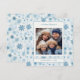 Envía un saludo de Navidad a tus seres queridos con nuestra tarjeta de Navidad con foto familiar cuadrada de copo de nieve azul a la acuarela.