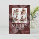 Esta divertida tarjeta de felicitación de vacaciones de foto de 5" x 7" cuenta con un diseño de cuadros borgoña con espacios para cuatro de tus fotos favoritas y tu nombre. La felicitación personalizable es "Feliz a Todos".